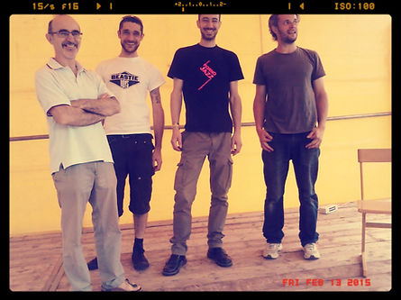 Sopra Andrea Dilillo, Matteo Bennici,Emanuele Parrini, Samuele venturin prima di un concerto nel 2013 . A sinistra la locandina per il Cip Cip Tokyo tour ( 2012 / 2014) foto Emma Venturin