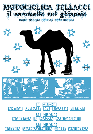 " IL CAMMELLO SUL GHIACCIO" è il conceerto con il quale la MOTOCICLICA TELLACCI si è presentata sul palco dopo l'ingresso di Luigi Lullo Mosso al basso e Stefano Bartolini ai sassofoni.